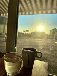 Onsdag 18/2-26 Nu sitter vi på bussen igen, jag och andra djupfrysta resenärer. Idag tog hon i vild förnekelse på sig vårjackan, och upptäckte då att det fortfarande var skrämmande låga grader ute. Efter att ha laddat på cafe Hamilton är hon nu redo både för APT och kvällspasset. Det är tillåtet att dricka kaffe en dag i veckan, och den kafferansonen är förbrukad nu. So be it. Idag är dagen då vi transformerar negativt tänkande till positivt. Vi stillar stormande vindar genom att vila i stormens öga. Vi ventilerar och agerar bara där det blir konstruktivt, och blandar inte in andra. Idag är dagen då vi famlar oss igenom dimmorna, och upptäcker fyrens flackande ljus. Vi går ur gamla fotspår, och gör nya - på den strand där allting tillslut sköljs bort av havets vågor. Allt enligt varandets lag. Det här är dagen som avslutas med en magisk solnedgång - where ever you are. Är det molnigt - bara blunda - så ser du den i alla fall.